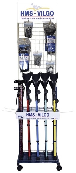 Ce présentoir de cannes (réf K3) est modulable, sur roulettes, et personnalisable à votre image (avec votre logo et à vos couleurs).