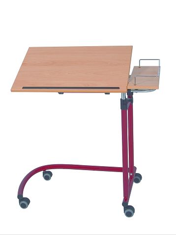 Table à manger au lit 2 plateaux dont un fixe, avec réglage en hauteur manuel et en inclinaison par crémaillère